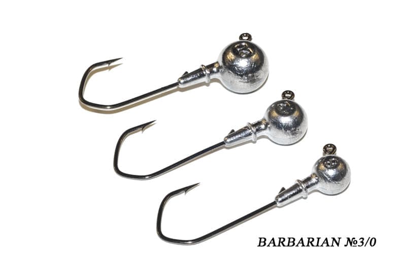 Джиг-головки Барбариан отлиты из высококачественного свинцового сплава. У выхода крючка предусмотрен шип и дополнительно юбка, которые обеспечивают надежное крепление приманки на снасти, предотвращают её [приманки] сползание. Джиг-головки оснащены качественным корейским крючком Барбариан. Строение этого крючка обеспечивает стабильное просекание пасти крупного хищника, процент схода минимален. Ушко крючка выходит из снасти под углом 120 градусов, в отличие от обычных крючков (90 градусов), что делает подъёмы и опускания приманки более плавными, естественными.