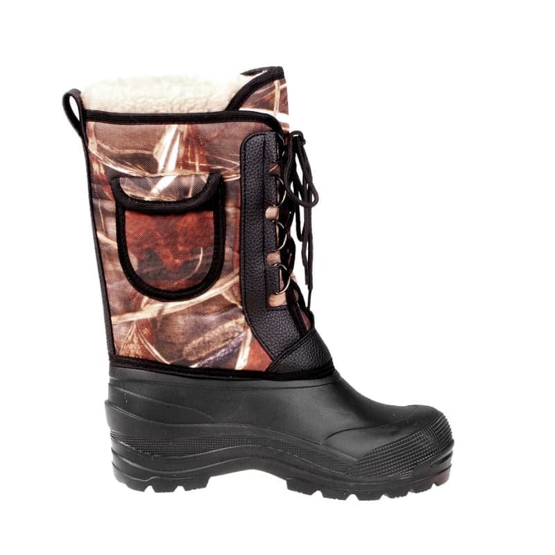 Верхняя часть сапог выполнена из специализированной ткани оксфорд, которая не боится влаги, ветра и прекрасно защищает от холода. Голенище модели Аляска оснащено небольшим внешним карманом на липучке для хранения мелких принадлежностей вроде рыболовных крючков или лески. Сапоги дополнительно утеплены чулком из натурального меха с фольгой и спандбондом.
