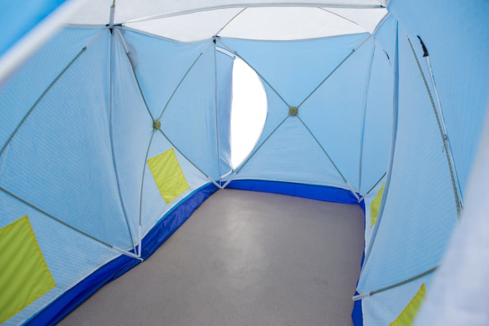 Оксфорд и термостёжка не склеены и не стеганы между собой, что позволяет создавать пространство для создания воздушно — тепловой подушки. Так же это позволяет удалять образующий конденсат и просушивать палатку.