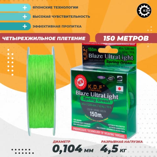 ГлавнаяМагазинПЛЕТЕНКАПлетенка KDF Trout Blaze Ultra Light Spring Green 0,104мм 150м