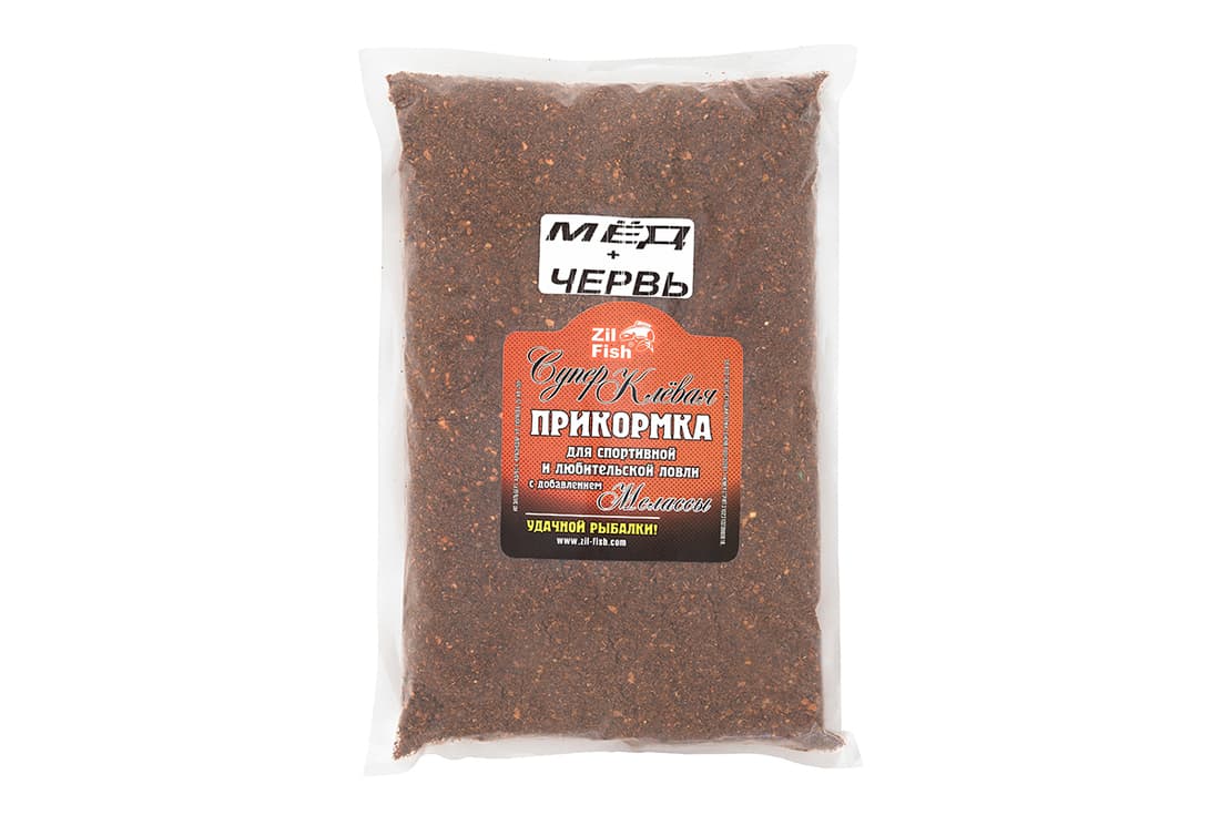 Прикормка ZIL-FISH увлажненная на мелассе "Мед+Червь" 1кг