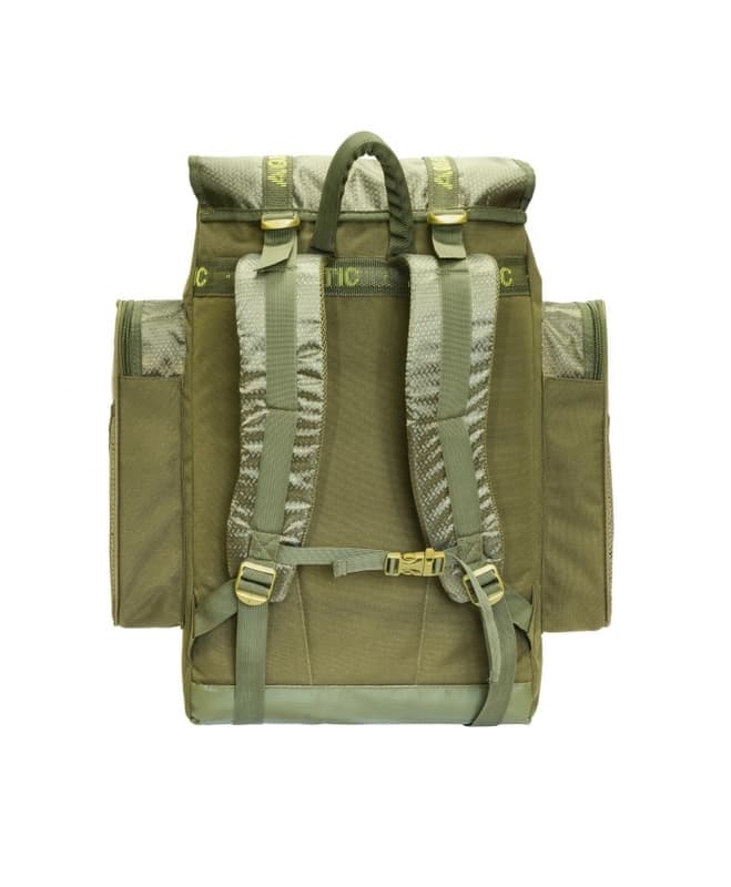 Рюкзак Aquatic из полиэстерной непромокаемой ткани повышенной прочности 600×900D объёмом около 60 литров. Рюкзак имеет 2 изолированных отделения и имеет 7 дополнительных карманов. Благодаря продуманной конструкции он пользуется большой популярностью у рыболовов и охотников.