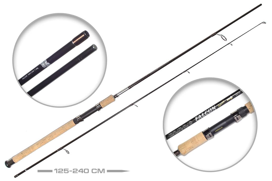 Кол-во секции: 2 Серия легких высокочувствительных спиннинговых удилищ FALCON одна из лучших серий, которую представляет фирма GERMAN. Эргономичная форма и высококлассная пробка на рукоятке гарантирует, что вы не устанете, даже если будете рыбачить целый день. Все удилища оснащаются практичным винтовым катушкодержателем с нижней гайкой, неутомляющим кисть. Уникальная серия FALCON позволяет работать как с джиг-приманками, так и с блеснами, и воблерами. Прогрессивная расстановка пропускных колец в стиле new concept гарантирует оптимальное распределение нагрузки на бланк. Органичное сочетание чувствительности и мощности, дают спиннингисту реальный шанс на победу над упорной и сильной рыбой