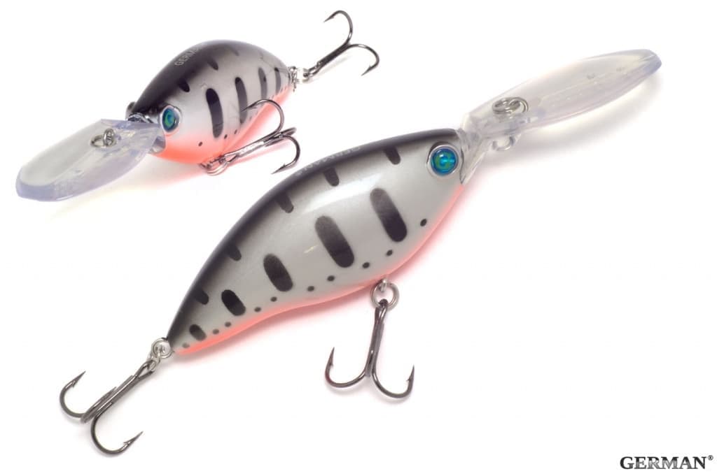 Тип: Крэнк. Данная модель крэнка широкотелая и успешно имитирует карасика, подлещика, плотвичку или окунька. На проводке воблер имеет агрессивную, размашистую игру которая является залогом успешной рыбалки выманивая хищника из засады и провоцируя на атаку. Этому также способствует и шумовая камера издающая резкие и громкие звуки. Помимо шумового эффекта, шарики расположенные в камере, являются стабилизаторами при проводке, позволяя занимать приманке правильное положение в воде и забрасывать воблер достаточно далеко и точно. Воблер устойчив на сильном течении, но и в стоячей воде он не потеряет своей активности. Ещё хотелось бы упомянуть и окрас этой модели, он отличается от классической покраски и выполнен с использованием 3D технологии, которая делает приманку ещё более реалистичной. Подводя итог можно назвать этот воблер универсальным оружием рыбака в борьбе за трофейную рыбу на средних глубинах.